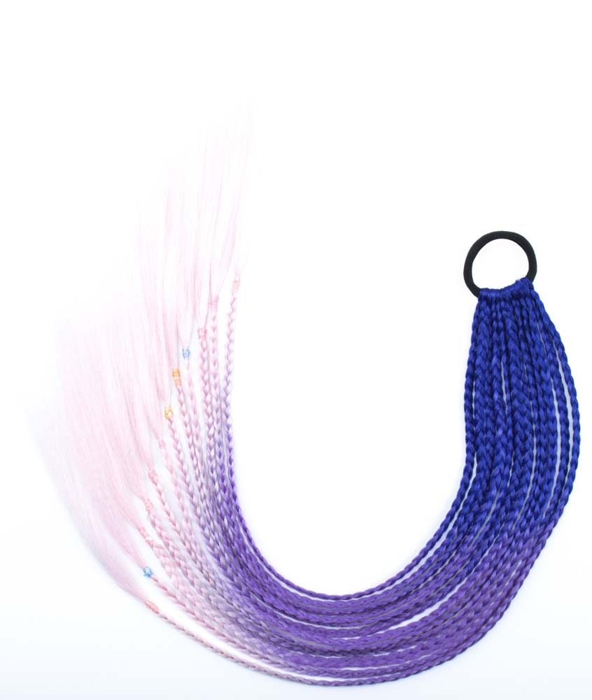 24'' BRAIDED PONYTAIL HAIR EXTENSION WITH ELASTIC RUBBER BANDS BLUE, PURPLE, SEASHELL SYNTHETIC BRAIDING HAIR