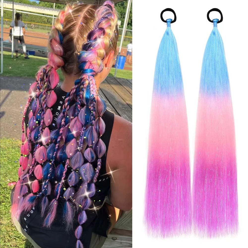24'' TINSEL PONYTAIL SYNTHETIC HAIR EXTENSIONS LIGHT BLUE,PINK,PURPLE
