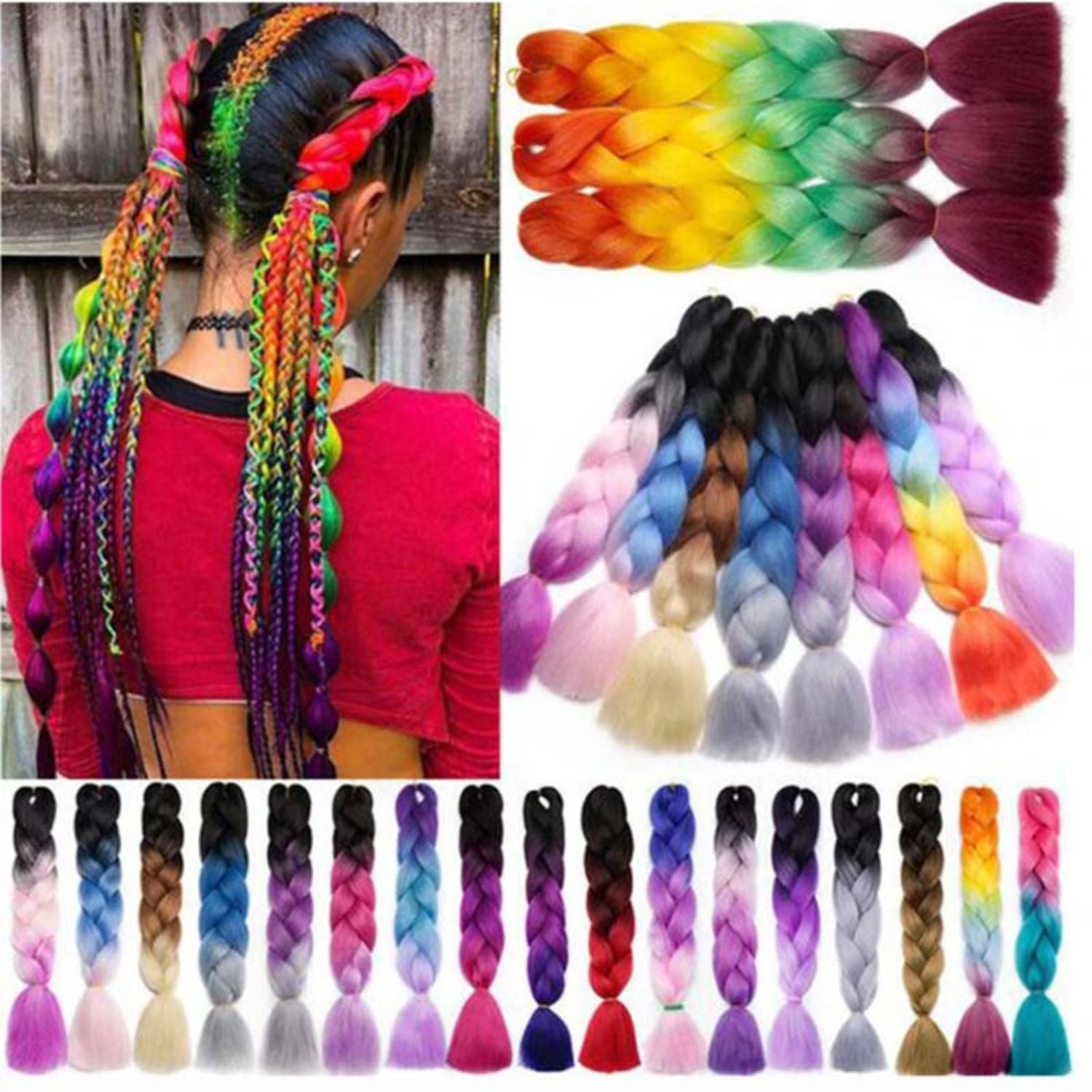 24'' FOUR TONE OMBRÉ JUMBO BRAID HAIR EXTENSIONS SYNTHETIC BRAIDING HAIR