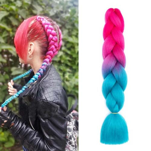 24'' TWO TONE OMBRÉ JUMBO BRAID HAIR EXTENSIONS HOT PINK, AQUA SYNTHETIC BRAIDING HAIR